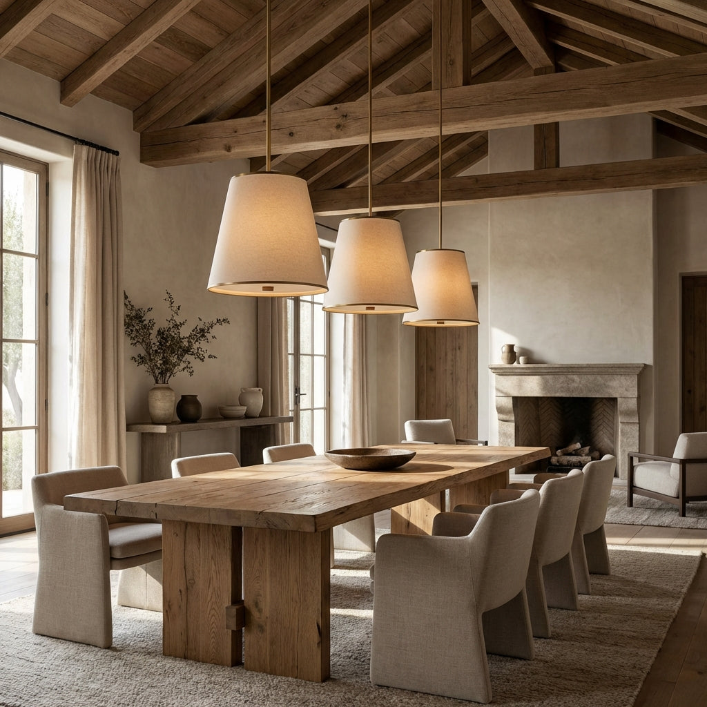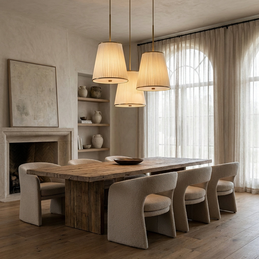 Infuse your home with understated elegance using the Aria Linen Shade Lighting Collection. Featuring soft, textured linen shades and slender metal frames in warm finishes, this curated line includes linear chandeliers, pendants, and sconces. Each piece casts a gentle, diffused glow, perfect for elevating dining rooms, bedrooms, or hallways with a refined, transitional aesthetic.