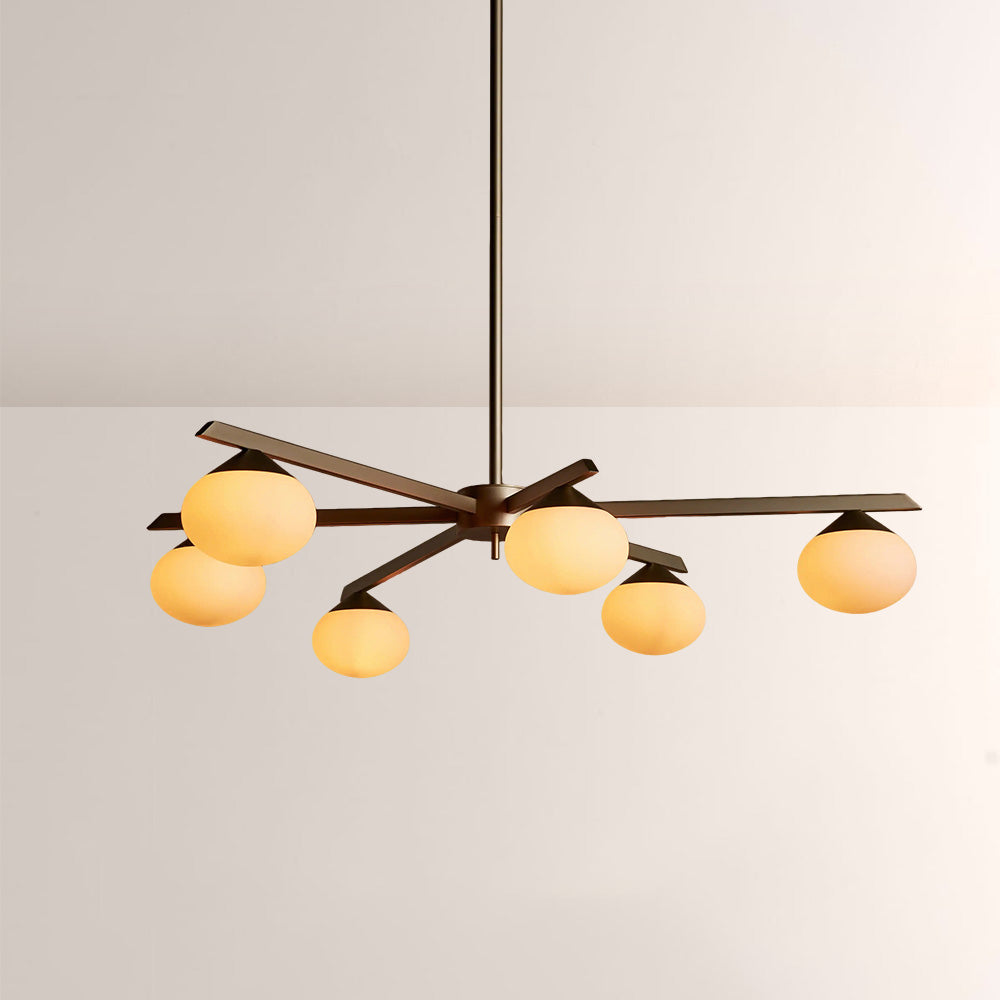 The Cosmo Staggered Arm Chandelier reimagines mid-century modern design with its architectural, angular frame and soft opal glass diffusers. Crafted for refined spaces, its elongated, offset arms create dynamic visual balance, casting a warm, even glow that elevates contemporary dining rooms and open.