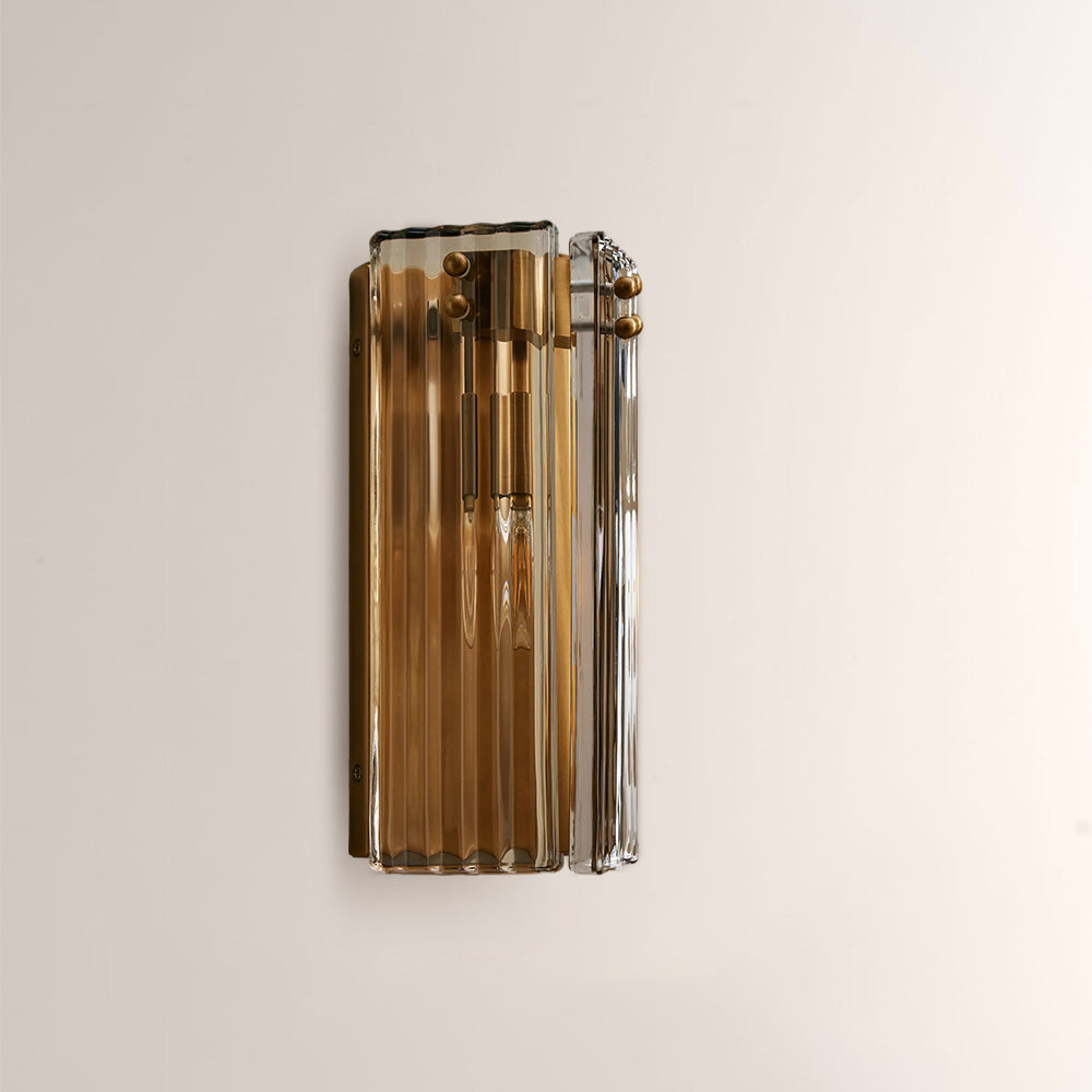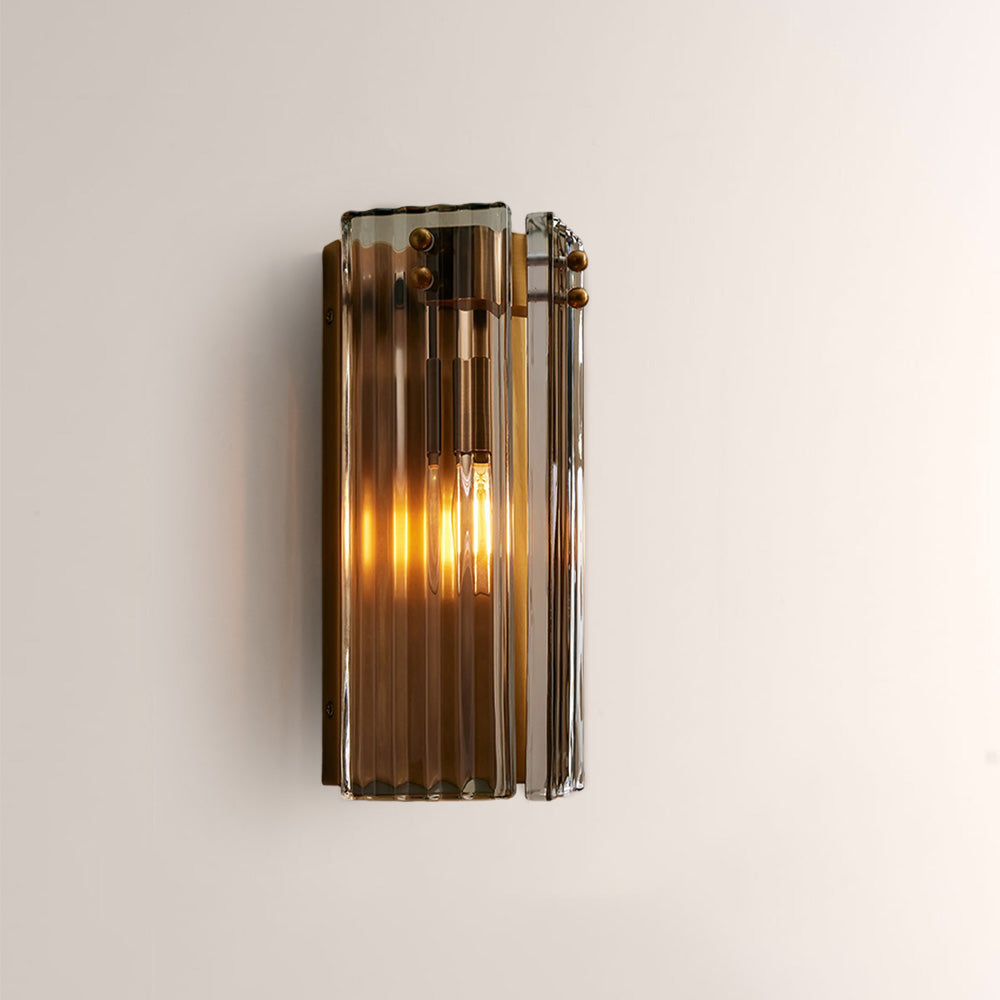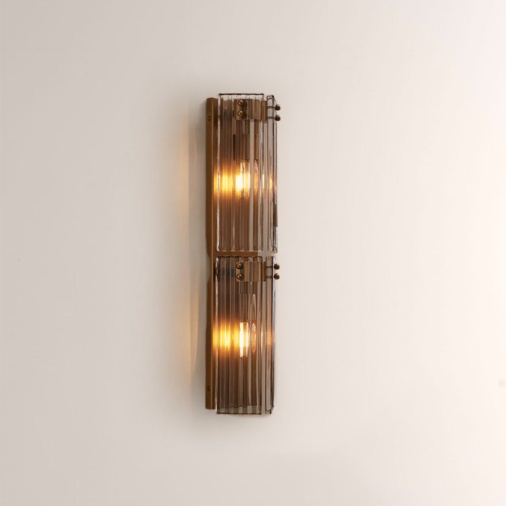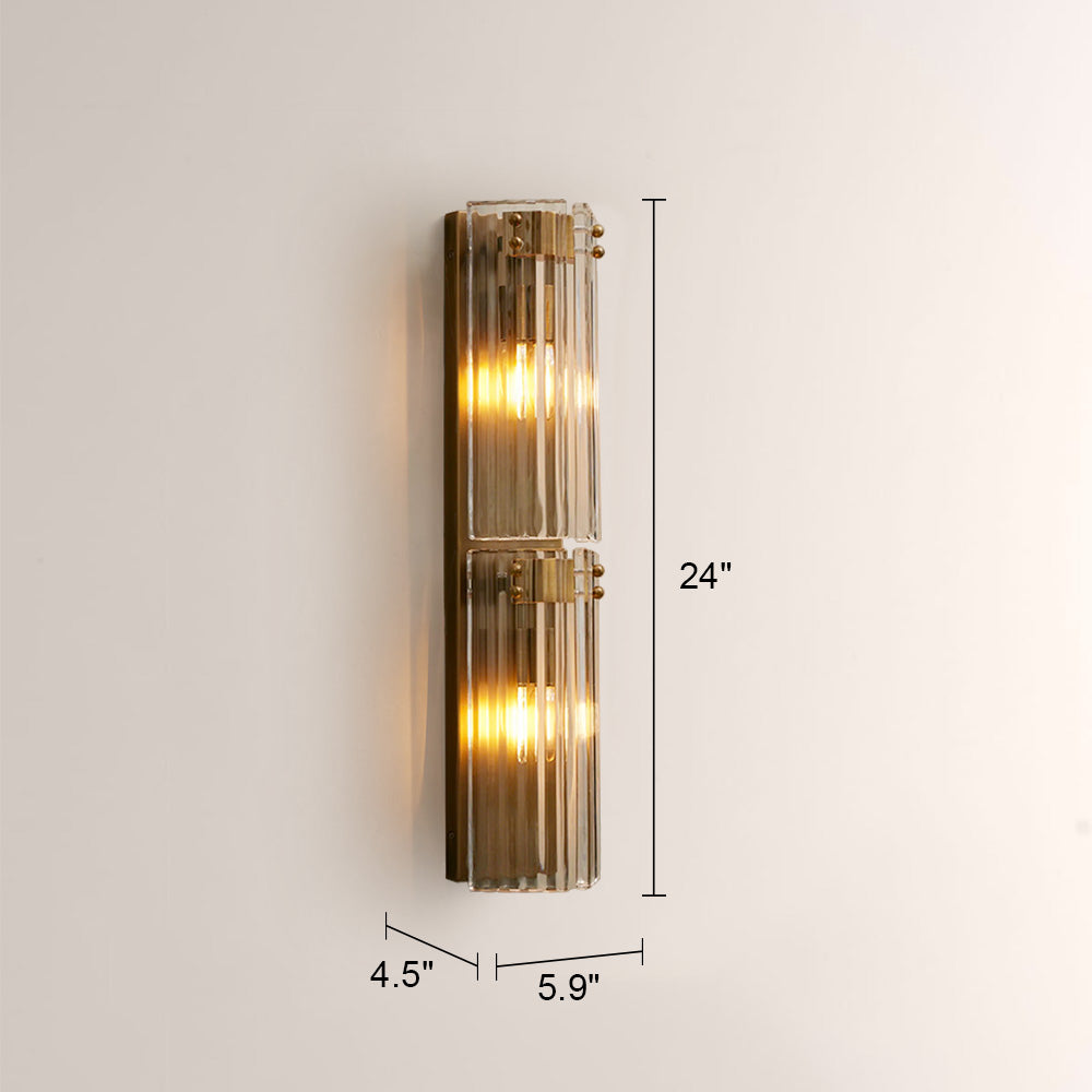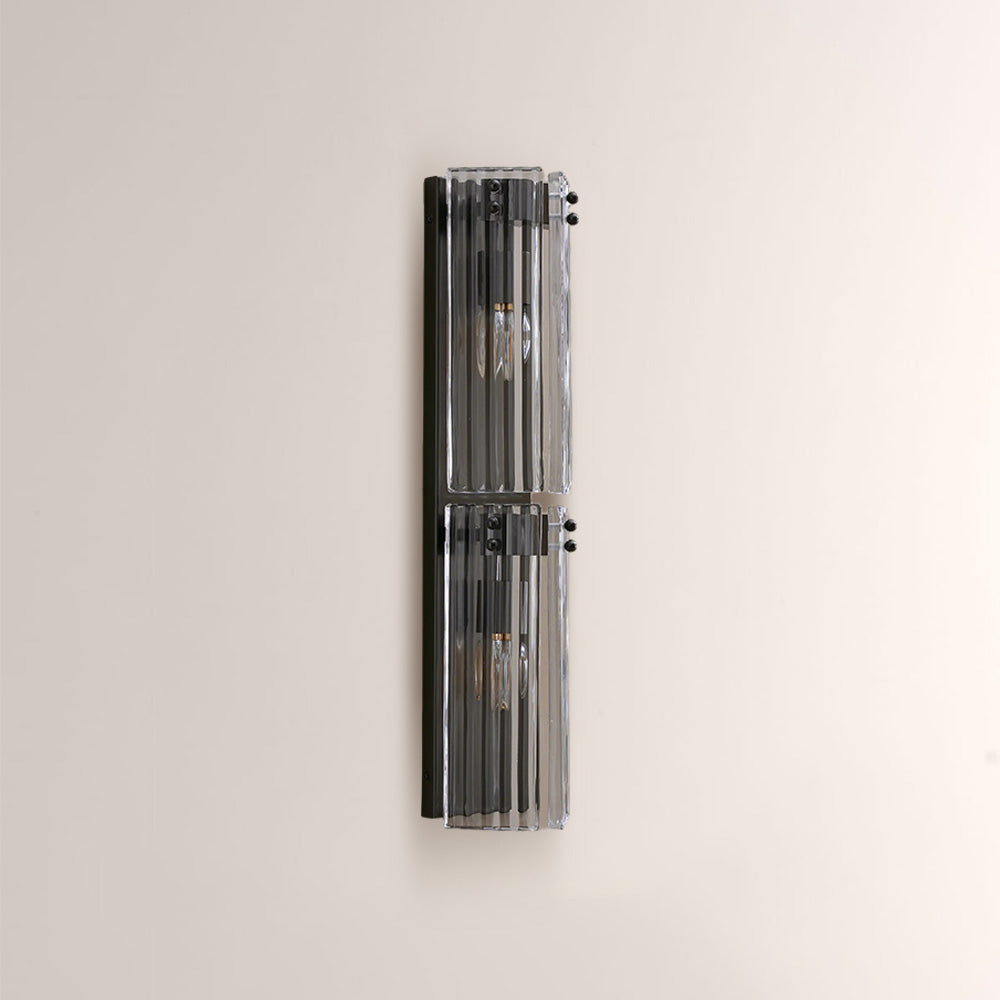 The Delsia Wall Sconce is a modern statement piece, featuring vertical fluted glass panels that refract warm light into a luminous, textured glow. Available in aged brass or matte black, its sleek, linear design elevates contemporary bathrooms, hallways, and dining spaces with refined, art-deco inspired luxury.