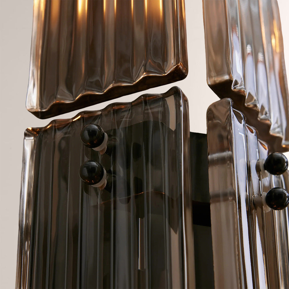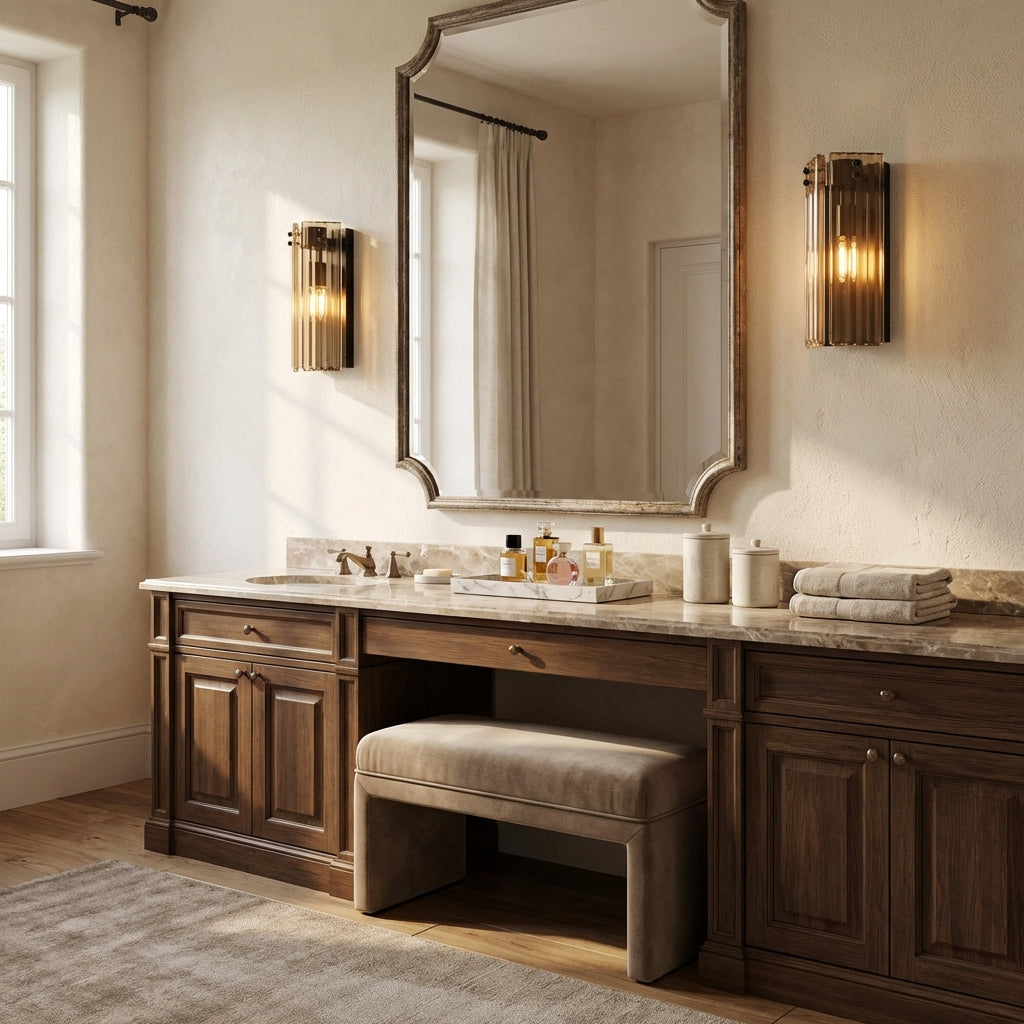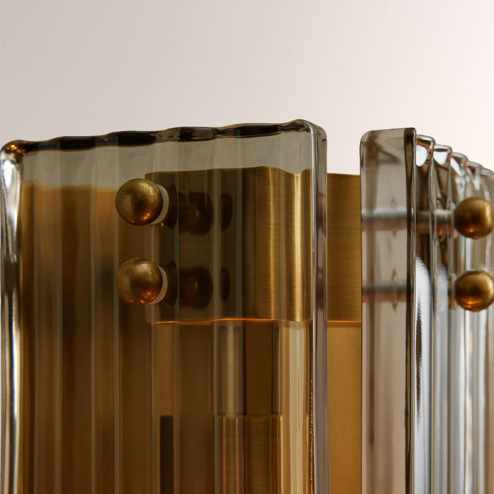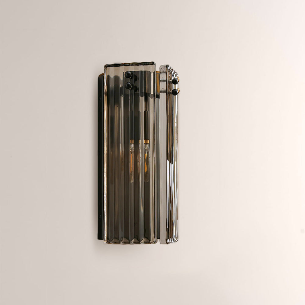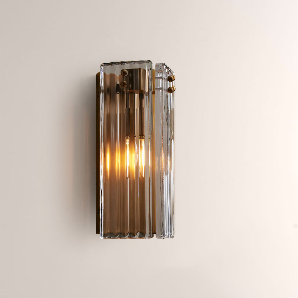 The Delsia Wall Sconce is a modern statement piece, featuring vertical fluted glass panels that refract warm light into a luminous, textured glow. Available in aged brass or matte black, its sleek, linear design elevates contemporary bathrooms, hallways, and dining spaces with refined, art-deco inspired luxury.