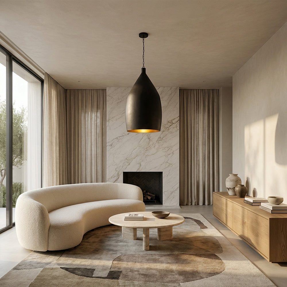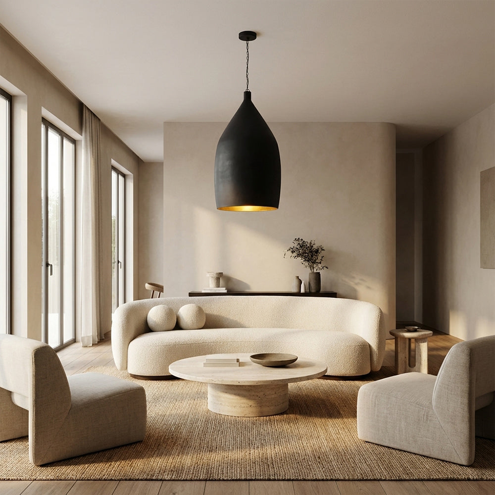 Make a bold sculptural statement with the Finn Hammered Metal Collection. Each fixture features a hand-hammered dark metal exterior, contrasted by a luminous gold interior that casts a warm, ambient glow. Available in dome and cone silhouettes, including a dramatic 48" dome option, these pendants blend industrial edge with modern elegance—perfect for elevating dining rooms, entryways, or contemporary living spaces.