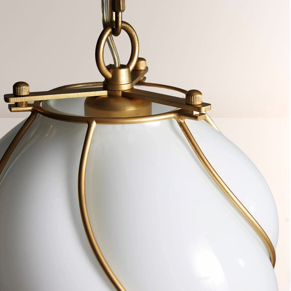 Mara Caged Opal Glass & Brass Small Pendant