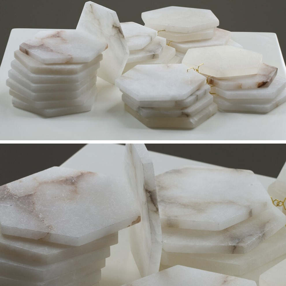 The material of alabaster is Metal & Alabaster, this series is a simple design with a modern style, its stylish style highlights its beauty and makes it give a warm and natural feeling while ensuring the light effect Feel.